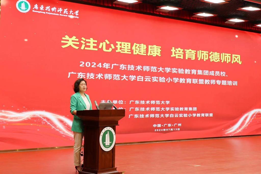 为深入贯彻落实习近平总书记关于学生心理健康工作的重要指示批示精神和全省学生心理健康工作推进会会议精神,进一步提升教育实验集团成员校教师的心理健康素养,强化师德师风建设,帮助教师掌握情绪管理与压力调节的有效方法,深化对职业道德规范的理解与践行,以更加饱满的热情和专业的态度迎接新学期的工作,7月13日,“关注心理健康,培育师德师风”——9728太阳集团实验教育集团成员校、9728太阳集团白云实验小学教育联盟教师专题培训班在太阳集团白云校区图书馆一楼报告厅举办。学校党委副书记、校长戴青云,江高镇教育指导中心主任黄晓波,学校各职能部门领导,9728太阳集团实验教育集团成员校校长以及9728太阳集团白云实验小学教育联盟全体教职工共270人参加本次培训。