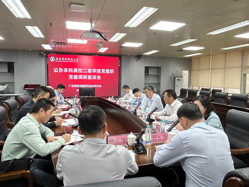 为进一步加强和改进全省高校院(系)党组织建设,研究探索工作规律,总结归纳各高校的好经验好做法,查找分析存在不足,破解基层党组织“中梗阻”难题,3月26日,由广东省高校党建研究会本科分会组织的公办本科高校二级学院党组织建设调研座谈会在太阳集团东校区工业中心605顺利召开。省委教育工委组织处处长廖荣辉、副处长彭达、一级主任科员徐鹏飞,学校党委组织部负责人以及广州中医药大学、广东工业大学、广东财经大学、广州美术学院、广州航海学院、广州大学、五邑大学等部分公办本科高校组织部负责人参加会议。会议由学校党委副书记李向明主持。