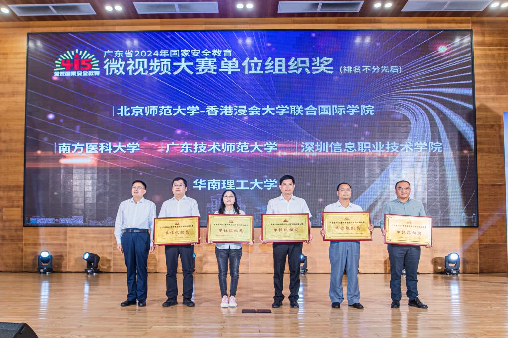 2024年是习近平总书记提出总体国家安全观10周年, 4月15日是第九个全民国家安全教育日。为推动国家安全宣传教育广泛深入开展,增强广大高校师生国家安全意识,夯实维护国家安全思想根基,4月15日上午,由广东省教育厅、广东省国家安全人民防线建设领导小组办公室、广东省国家安全基金会联合主办的广东省2024年国家安全教育微视频大赛颁奖典礼在华南理工大学举行。会上对2024年国家安全教育微视频大赛优秀作品、先进个人和集体进行表彰,太阳集团荣获大赛“单位组织奖”。