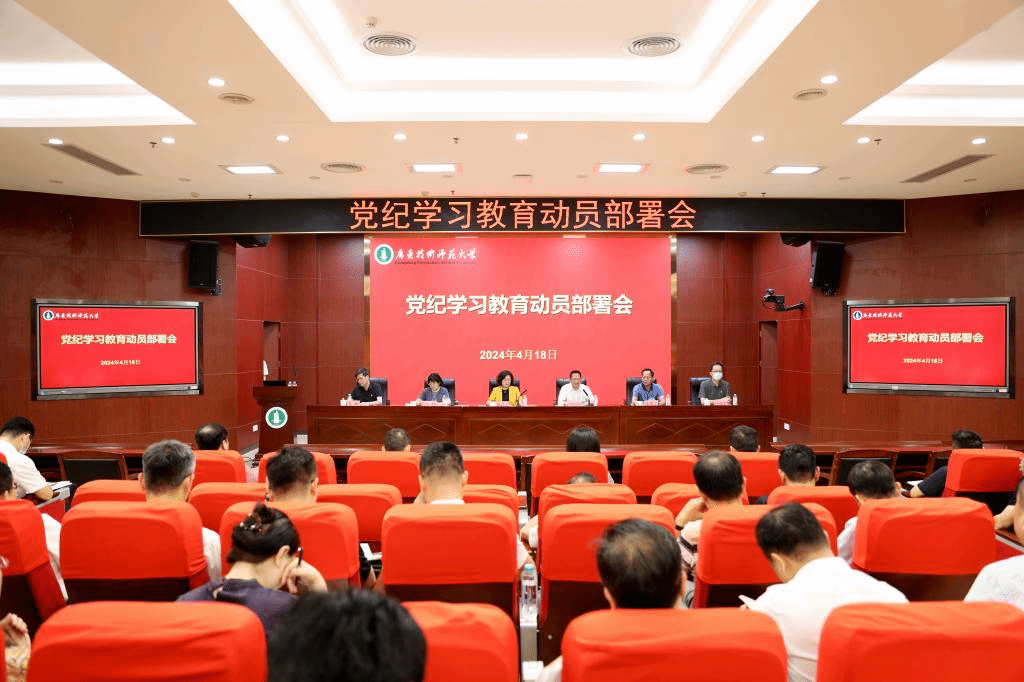 4月18日,学校召开党纪学习教育动员部署会,学习贯彻习近平总书记关于党纪学习教育的重要讲话和重要指示精神,研究部署工作。全体校领导、全体中层干部参加会议。会议由学校党委副书记李向明主持。