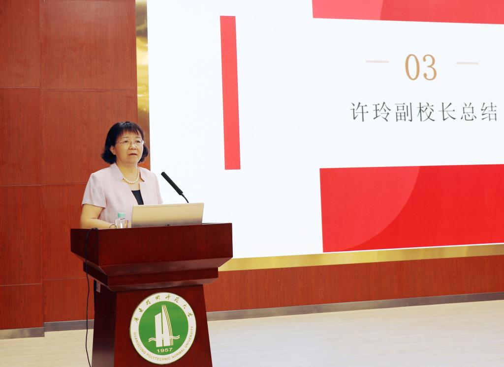 许玲对本次预演练工作进行总结。她表示,本次演练总体上达到了预期目的,为各单位本科教育教学工作起到了很好的“把脉问诊”作用,帮助各单位查找了问题和不足,希望各单位继续端正工作态度,落实好主体责任,持续改进、不断完善,为评估专家到校审核评估做好充分准备。