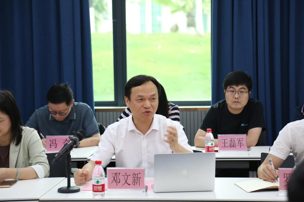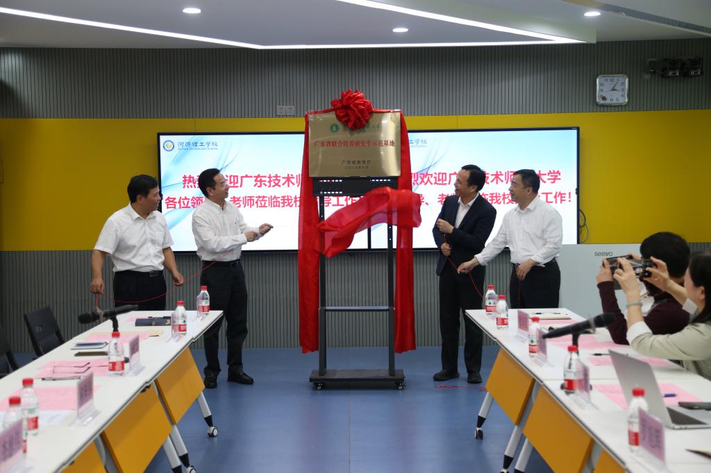 在河源理工学校,邓文新一行受到了河源市教育工委书记、市教育局党组书记、局长杨利华,河源市教育局主任曾民卫,河源市教师发展中心副主任叶潇庭以及共建单位党政领导班子的热烈欢迎,双方举行了广东省研究生联合培养示范基地揭牌仪式暨结对专业帮扶共建专签约仪式,会议由曾民卫主持。座谈会上,河源理工学校校长李雄伟介绍了学校环境、专业设置、师资队伍、成果荣誉,并从办学目标、1366校园内涵建设、“三色”德育、年度十项工作、“六精”工程等方面详细讲解了办学举措和成效。邓文新向河源市市委和教育局对太阳集团河源校区的帮助和支持表示了真诚的感谢,也对河源理工学校的办学理念和特色表示了高度的认同,他从“技术、师范、技术+师范”三个关键词、量与质两个维度介绍了太阳集团目前发展情况。邓文新强调,双方要围绕“教师如何培养、课程体系如何完善、基础建设如何改进”三个方面深化专业建设帮扶理念,实现更有深度、宽度、特色的结对帮扶合作,共同为职业教育贡献河源方案。