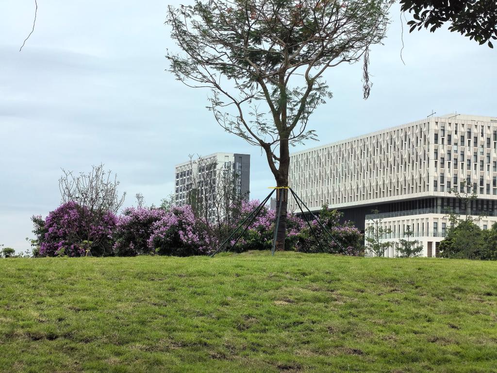 在图书馆南广场的校友林捐赠植树现场,尽管近日因大雨导致草地泥泞难行,但丝毫不影响大家的植树热情,校领导、老领导和校友们踩着满脚的淤泥,一起挥着铲子,把一抔抔蕴含着广大校友、离退休老领导老教师、在校师生员工以及社会各界对学校发展期望的泥土培植在已初绽“红云”花朵及充满生命力和希望的凤凰木上。植树环节后,校友代表还分别为捐赠的树木培土、悬挂纪念铭牌并合影留念。在近期连绵的“龙舟水”的滋养下,整个校友广场新建成的校友林草地湿润、花树清香。