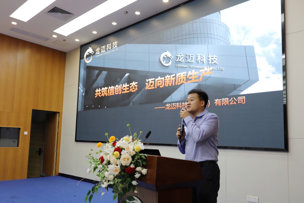 龙迈科技华南区总经理储召松带来了《共筑信创生态,迈向新质生产》的主旨演讲。他从信创产业现状及发展引入,详细介绍了信创解决方案及龙迈科技(南京)有限公司基本情况。