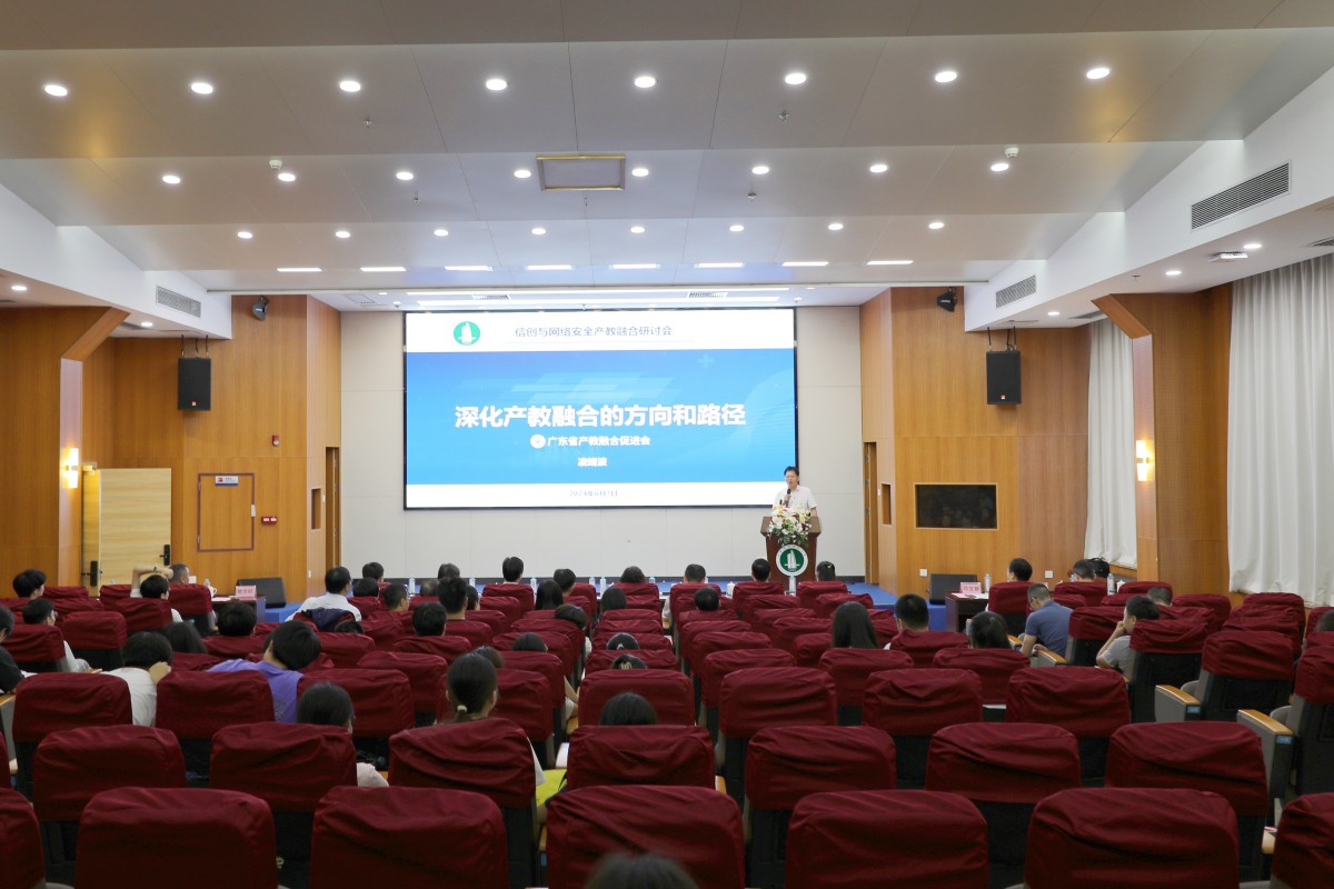 6月7日,广东省信创与网络安全示范性现代产业学院达之讲座教授聘任仪式暨信创与网络安全产教融合研讨会在西校区实训楼一楼报告厅举行。广东省产教融合促进会会长凌靖波(学校原党委书记)、学校校长戴青云、副校长邓文新、达之讲座教授李华、华为中国政企教育医疗系统部总裁卢永平等产教融合生态合作企业代表、学校相关单位负责人、网络空间安全学院师生代表参加了会议。会议由邓文新主持。