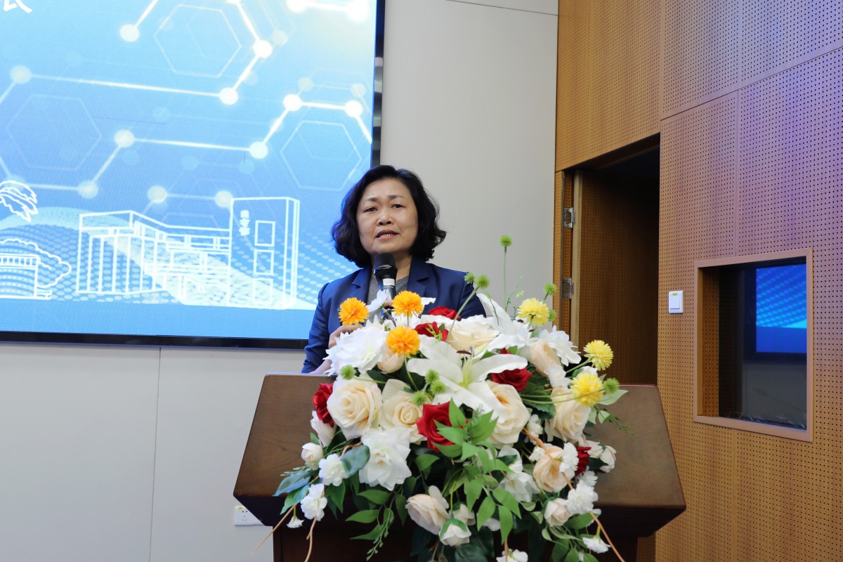 会议伊始,戴青云校长致辞并作主题报告。她代表学校对与会嘉宾表示热烈欢迎,并详细介绍了学校的办学情况和推动广东省教育行业信创和网络安全方面所做的探索与实践。她希望网络空间安全学院依托省级大学科技园和两个中心,发挥太阳集团“技术+师范”特色优势,围绕坚定不移推进产教融合战略、开展人才培养模式改革、促进校企双方高质量发展持续发力,打造“一园一院双中心N基地数字工场”,努力构建粤港澳大湾区产教融合体,为教育行业信创与网络安全贡献广师大力量。