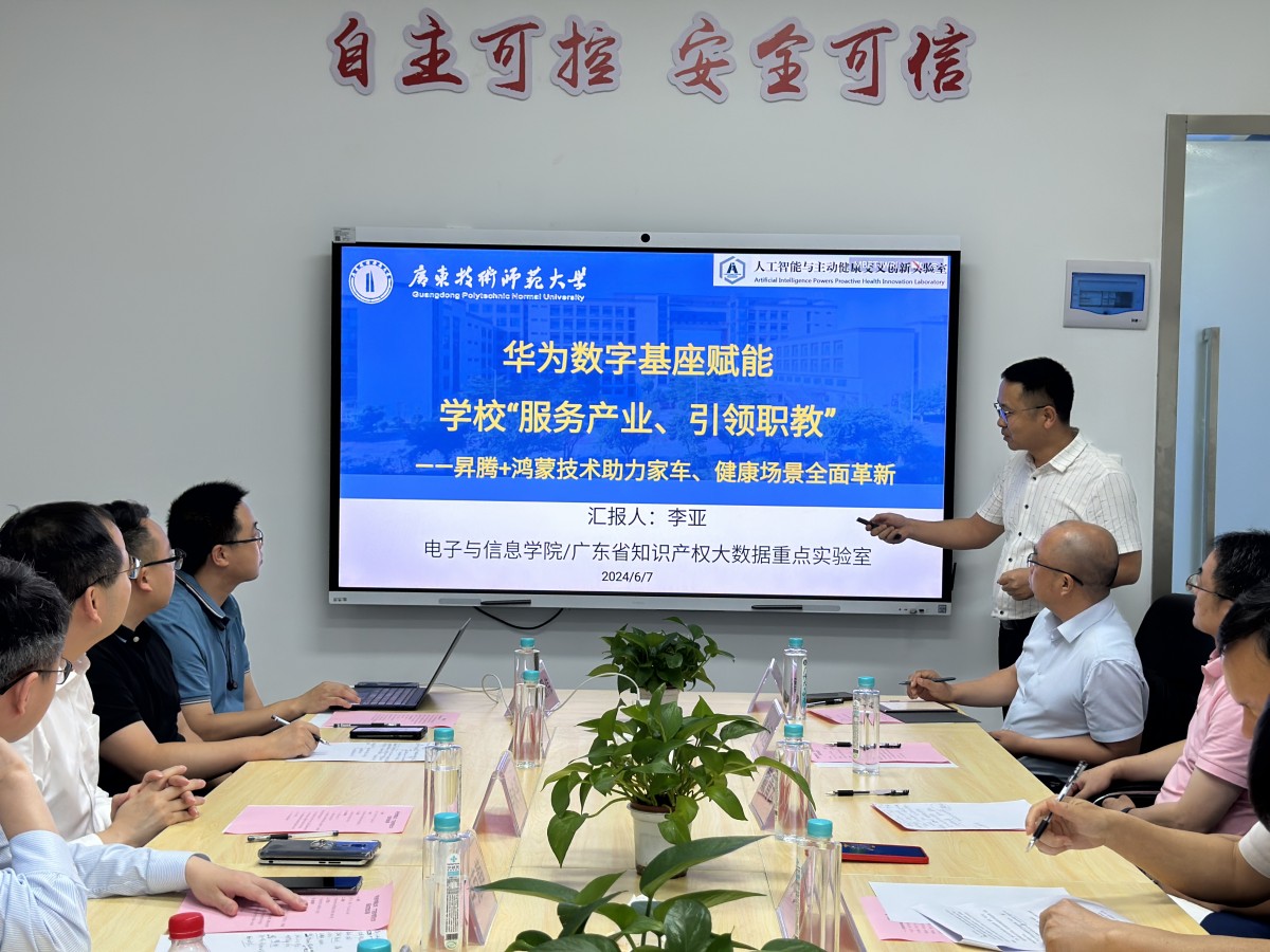 会上,戴青云校长代表学校对卢永平一行的到来表示热烈欢迎,并简要介绍了学校的基本情况及近年的办学成果。相关单位负责人介绍了家车一体中心与鸿蒙、昇腾合作情况,重点实验室与华为合作情况。华为广东教育医疗业务部解决方案经理马朋伟介绍华为在教育行业近期的一些动向。