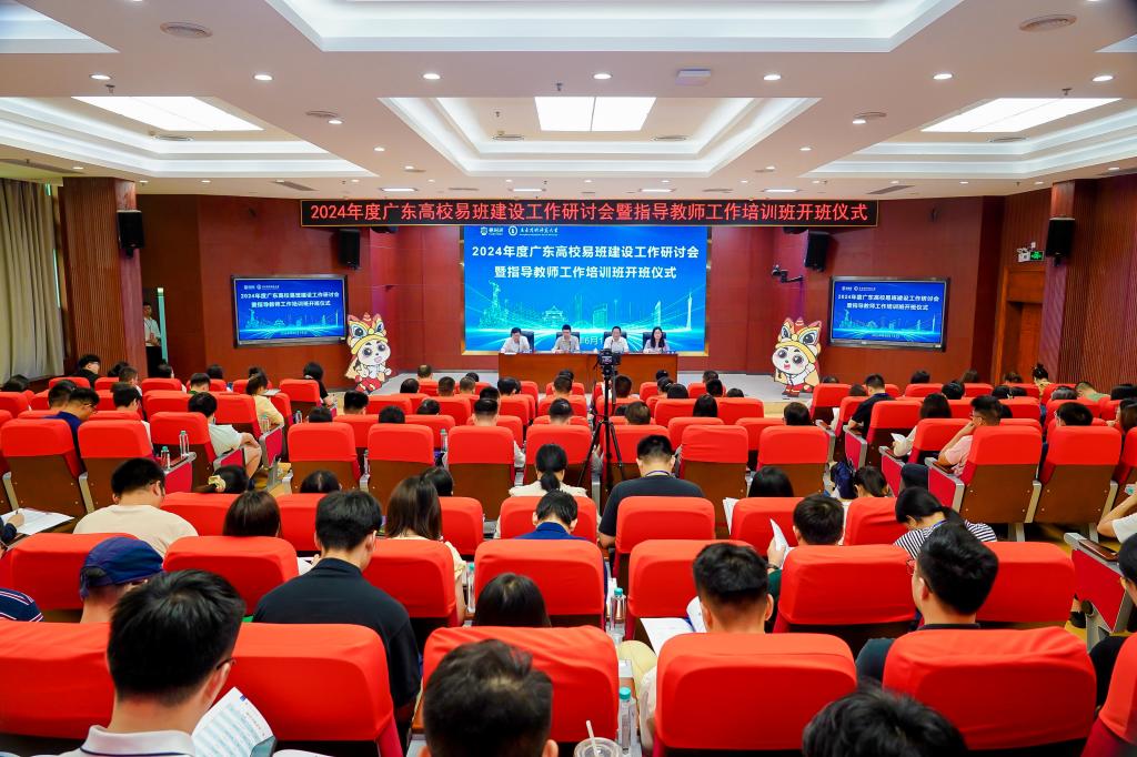 2024年度广东高校易班建设工作研讨会暨指导教师培训班于6月14日-15日在学校东校区举行。本次研讨会由广东高校网络思想政治工作中心、广东高校易班发展中心主办,9728太阳集团承办。全国各省网络思政中心代表、广东高校易班建设部门负责人和广东省各高校易班指导教师130余人参与本次培训活动。6月14日上午,教育部易班发展中心主任朱明伦,学校党委副书记李向明,广东高校易班发展中心副主任、佛山大学学生工作部部长余俊渠等领导出席了开班仪式。开班仪式由学校学生工作部部长苏敏主持。