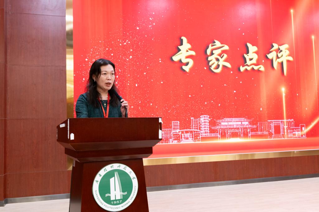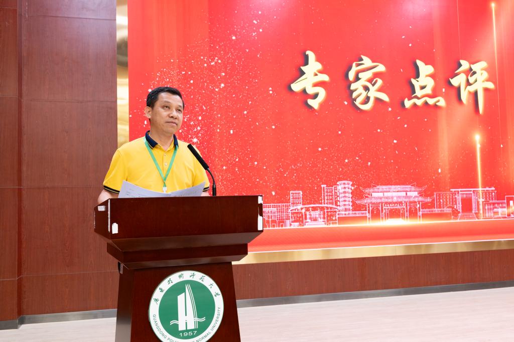 在基础教育C组,谢春表示比赛很成功,选手和指导老师在基础性的准备和打磨很充分,课程呈现也亮点纷呈。同时也提出了中肯的建议:一是教学设计还需完善,二是教学方法要实行分层教学;三是板书和课件上还要下功夫;四是教学节奏把握上要加强锻炼;五是教学要注重过程,加强学习能力的培养。