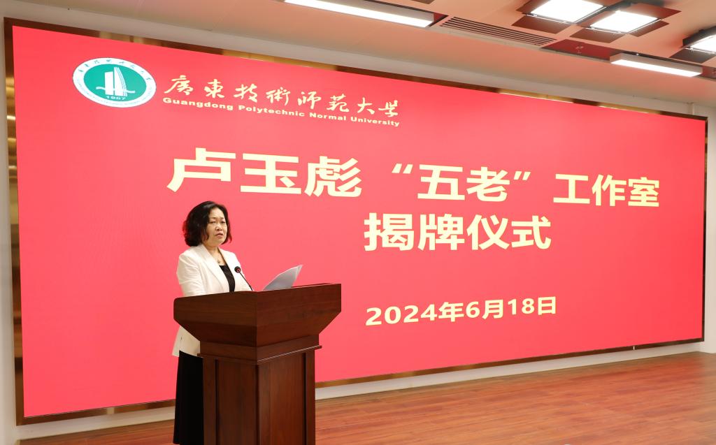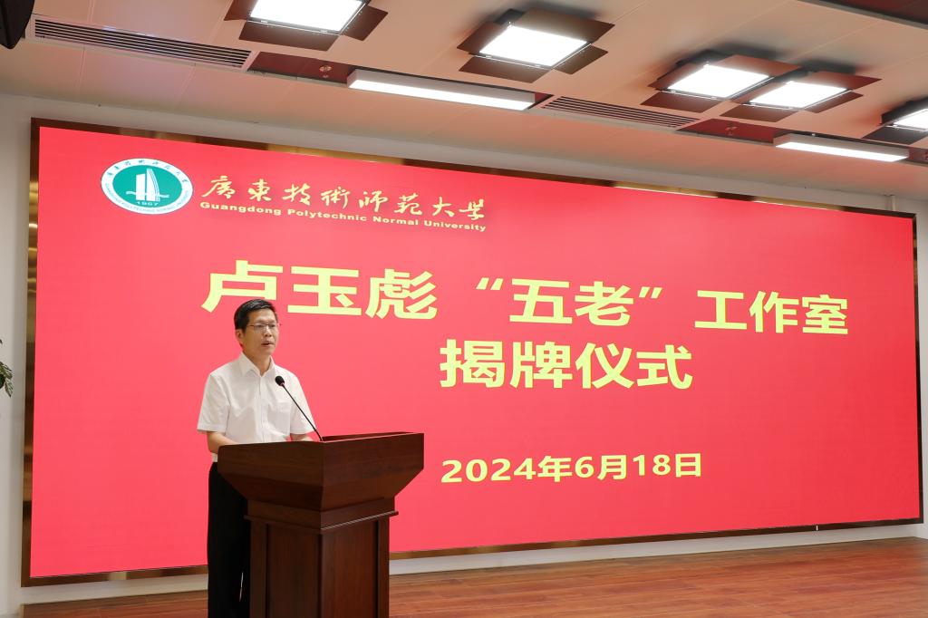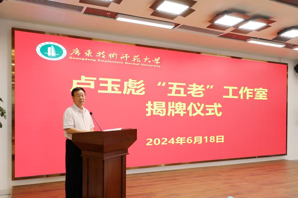 为贯彻落实习近平总书记关于加强关心下一代工作的重要指示精神,支持更多老同志在关心下一代的广阔舞台上老有所为、发光发热,为培养社会主义建设者和接班人作出新的更大贡献。6月18日,“卢玉彪‘五老’工作室”揭牌仪式暨首次宣讲活动在白云校区图书馆达之学堂举行。广东省关工委副主任、广东省教育系统关工委主任王玉学,广东省教育系统关工委常务副主任张紫露出席仪式。学校党委副书记、校长戴青云,原校长郭杰,学校关工委主任、原副校长林卓,学校关工委委员、卢玉彪“五老”工作室成员、相关职能部门负责人、青年教师和学生代表参加活动。仪式由学校副校长苏晖主持。