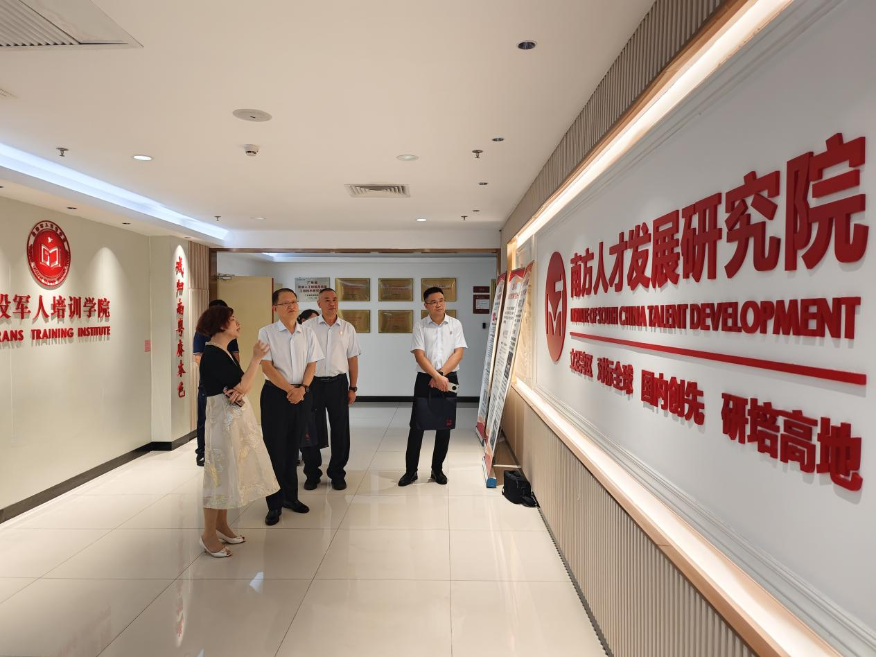 6月20日,广东省国防教育学会副会长兼秘书长王光军率队到太阳集团退役军人培训学院调研,省国防教育学会监事长郑鹏生、教研部长卢旭升、教研部干事钟骏银,学校校长戴青云,校办主任徐光伟、武装部部长全翠珍、退役军人学院负责人,广东省南方人才发展研究院院长赵玲玲、广东省南方人才发展研究院人工智能与大数据专委会主任郑雪吟、广东省退役军人创业发展促进会(品牌研究会)秘书长潘家俊等领导专家参加了本次调研活动。