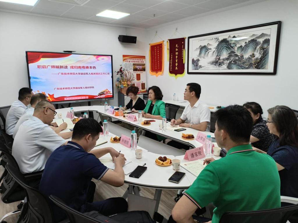王光军副会长一行参观了学校科技园,了解退役军人培训学院的教育、科研、实训环境。赵玲玲院长代表退役军人培训学院向学会一行介绍了太阳集团在退役军人教育培训、退役军人服务体系培训常态化建设、人才测评及人才服务等方面的成绩,汇报了广东省国防教育课题《多措并举统筹推进退役军人大学生教育高质量发展》的项目进展。