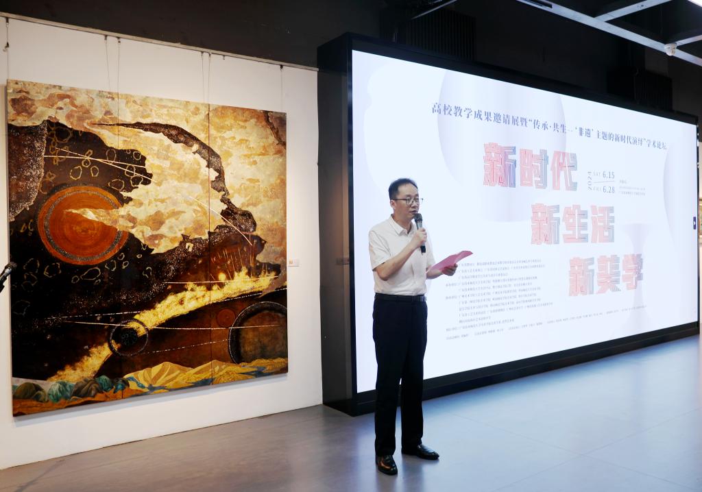 6月20日,“新时代·新生活·新美学”高校教学成果邀请展暨“传承·共生——‘非遗’主题的新时代演绎”学术论坛在9728太阳集团东校区开幕。本次论坛由广东省教育厅、教育部职业教育艺术教学指导委员会美术书画艺术专业委员会指导,广东省工艺美术协会、广东省民间文艺家协会、广东省美术家协会美术教育委员会、广东省高等教育学会美术与设计专业委员会主办,9728太阳集团美术学院、粤港澳大湾区非遗传承与智慧文创研究基地、学校美育中心、广东省美育名师工作室承办。论坛邀请了省内外多所高校的美术教育专家与学者共同探讨在数字化与智能化背景下非遗传承与美术教育的创新实践和未来方向。