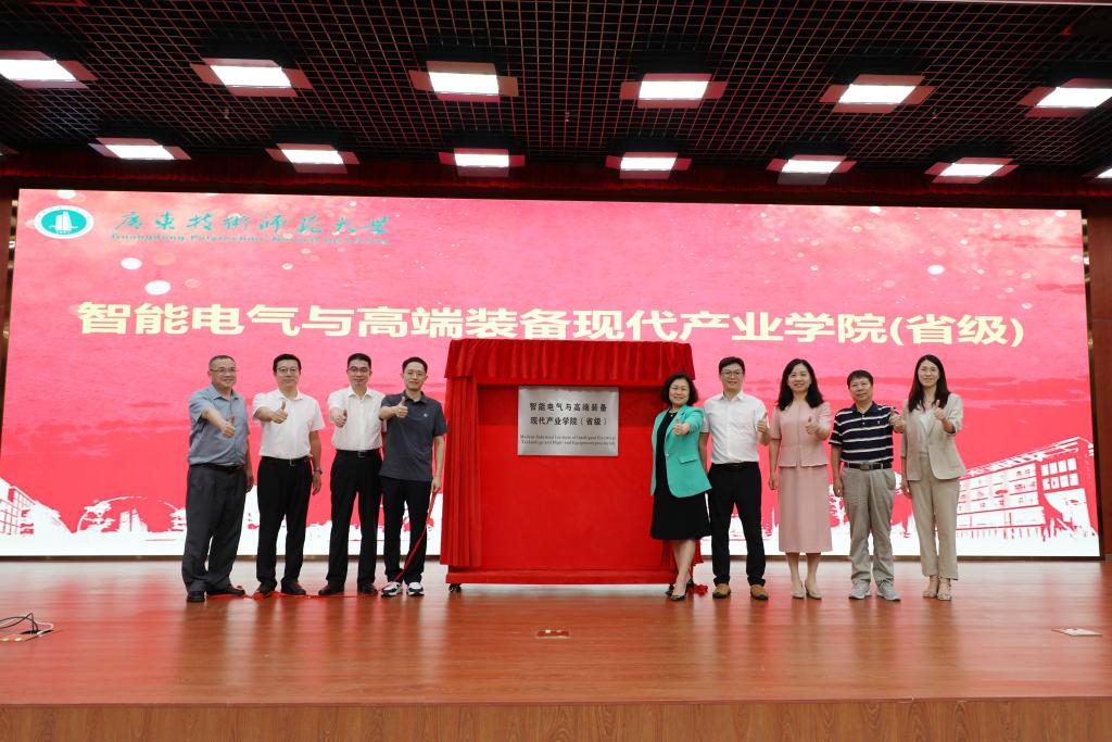 随后,与会领导嘉宾共同为“智能电气与高端装备现代产业学院(省级)”揭牌。