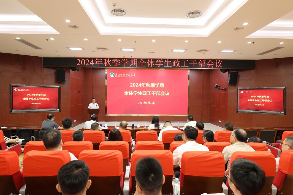 凝心聚力启新程。8月26日,学校在东校区第一教学楼208讲学厅召开2024年秋季学期全体学生政工干部会议。学校党委副书记李向明出席会议。党委学生工作部、研究生院、校团委负责人,河源校区管委会相关工作人员、各学院主管学生工作领导及全体辅导员参加会议。党委学生工作部副部长吴涛主持会议。