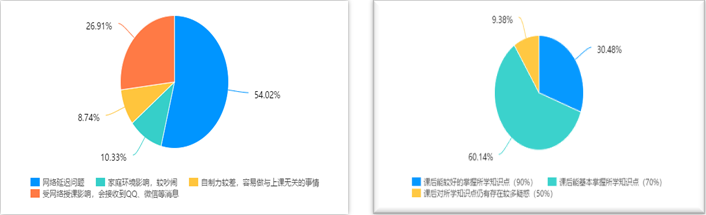 另一方面,网络授课也存在一些问题。由于网络授课自身的弊端和部分同学们自觉性的欠缺,学生并不能完全投入地学习、课堂参与度不如线下的高、也不能比较好地掌握所学知识点。