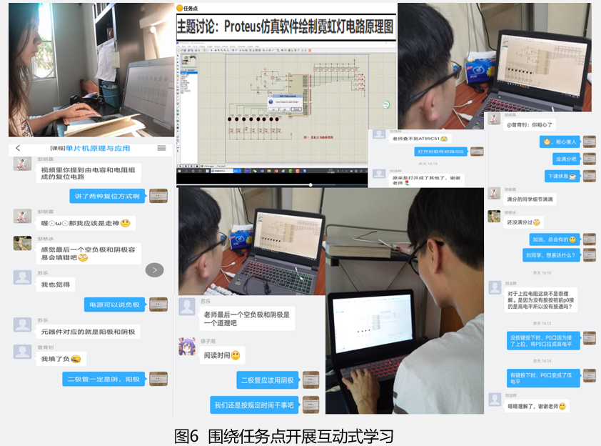 学生通过学习通随机分组任务及进行主题讨论,锻炼了协作、交流能力。对于“慕课”视频,大家更多关注的是“微小化”和“碎片化”,但从实践情况看,“慕课”视频的“交互性”和学生的“可参与性”更为重要。即通过设计和开发“交互式”或“互动式”的“慕课”视频,把传统的教学过程变成了一种高密度的、“一对一”的互动“聊天”过程。在“群聊空间”,教师可以像在课堂上一样,在视频讲授过程中提出各种问题,每个学生各自回答或协同作答。这样的技术运用既可督促学生在观看视频的过程中高度集中精力,又可让学生全程参与到教学过程中,动脑又动手,获得较佳的学习效果。这种“一对一”互动过程,在传统的教学模式下是不可能实现的,见图6所示。通过设计和开发“交互式”或“互动式”的“慕课”视频,把传统的教学过程变成了一种高密度的、“一对一”的互动过程。通过互动聊天,我们发现,大量的PPT不见了,教师口干舌燥讲课的现象消失了,学生学习的劲头更加饱满了