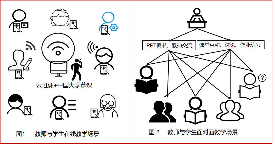 在线授课是课堂教学改革的重要发展方向。组织好教学内容,保障好授课效果,实现师生有效互动,强调学生的主动性和参与性是在线教学设计的重点(如图1所示),可以在一定程度上扭转此前传统面对面课堂以教师为主的教学模式(如图2所示),把更多的学习自主权和时间交给学生,把“控”变为“推”,把“教”变为“学”,把“管”变为“伴”。