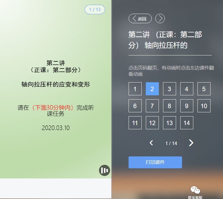 语音课堂录播:为了测试教学环节设计的有效性,在开学前一周,本课程就提供线上课程的试讲。在试讲后汇总学生的反馈意见,主要有三个问题:网络高峰期可能断线、课程难度高希望重复讲解、要求实时反馈听不懂的内容。为了解决这三个问题,本课程最终选用语音录播的方式推送正课内容,在线上平台始终保留音频课件,以便于学生学习和复习。