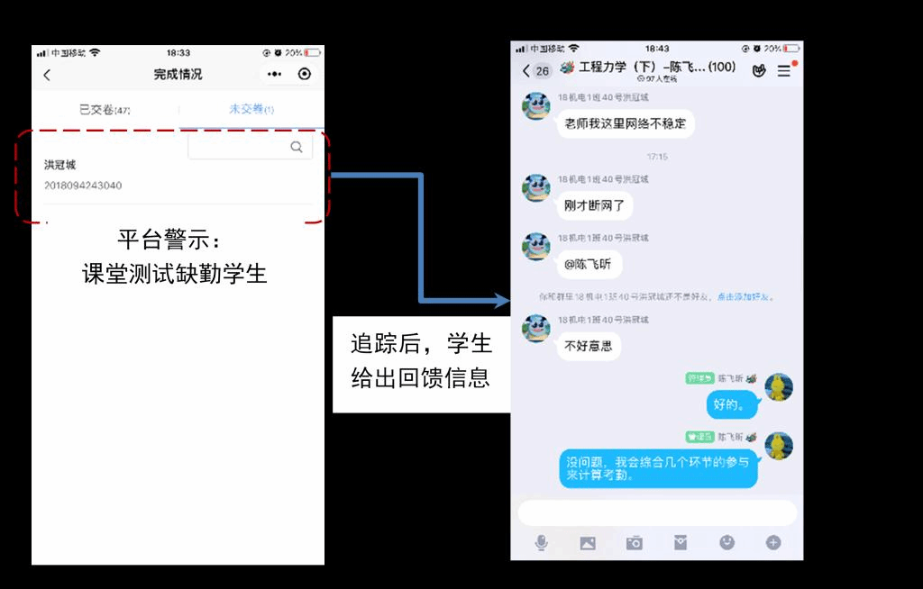 一方面基于平台的学情数据,检查每个同学的学习情况和作业提交,通过qq群反馈学习情况,表扬先进,监督落后;另外一方面通过qq群、雨课堂讨论、投稿等方式收集学生反馈,便于改善下一讲教学。