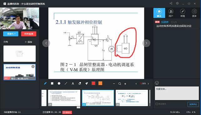 另外巧用直播工具的录播功能,也能达到很好的效果。图14是笔者使用该功能对“直流调速性能指标”这个难点知识的讲解效果,因为需要进行公式推导,还使用了公式编辑器。手机用户可使用浏览器、QQ、微信等任何具有扫码功能的APP,均可扫描或长按识别右侧二维码进行观看。电脑用户直接点击图片,即可进行观看。