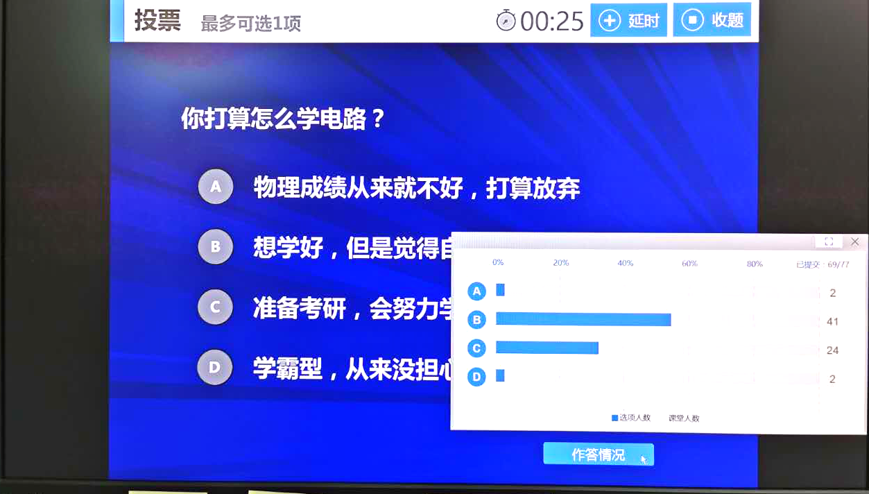 因每位同学个人网络信号有差异,实测发现95%以上可以进行实时音频/视频沟通;约5%的学生因网络原因不能进行即时沟通,采用观看在线PPT,了解课堂内容,使用在线交流平台“微信群”提出疑问,课后结合“爱课程”视频进行学习。该模式可扩展到任意一门基础理论课的教学,目前大电教学部部分老师正在逐步使用该模式进行教学。