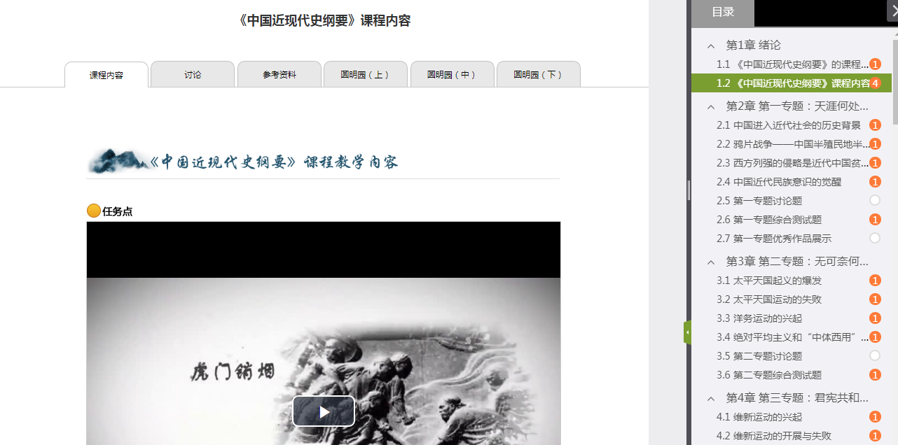 课程内容讲解+视频资源相结合:结合《中国近现代史纲要》这门课与历史和现实社会的密切关联,充分利用互联网丰富的影视以及纪录片资源,对某一历史事件的生动还原,或者对某一历史人物的原音呈现。增强学生对课程内容的记忆和掌握,并吸引学生将注意力集中在课堂,增加课堂的生动性和趣味性。