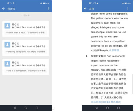 线下学习主要是借用企业微信群的“微文档”在线文档和表格的共时编辑和分享功能,用微文档来完成个人创作,并与同学共同编辑资料,提升协作效率。文档存放到微盘,内容修改实时保存,任何时候访问都是最新版本,手机、平板、电脑里都能用。把文档发给同学共同编辑,每次修改都能实时同步给所有人,无需重复传输。如果需要提醒同学关注只要 @ 一下,就可以提醒他查看