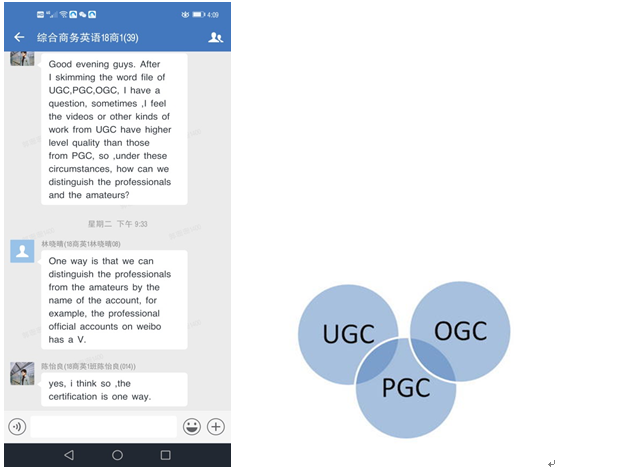 教学案例分析:United 2 Text I学生在企业微信群抛出了关于UGC, OGC和PGC的异同的相关问题:
