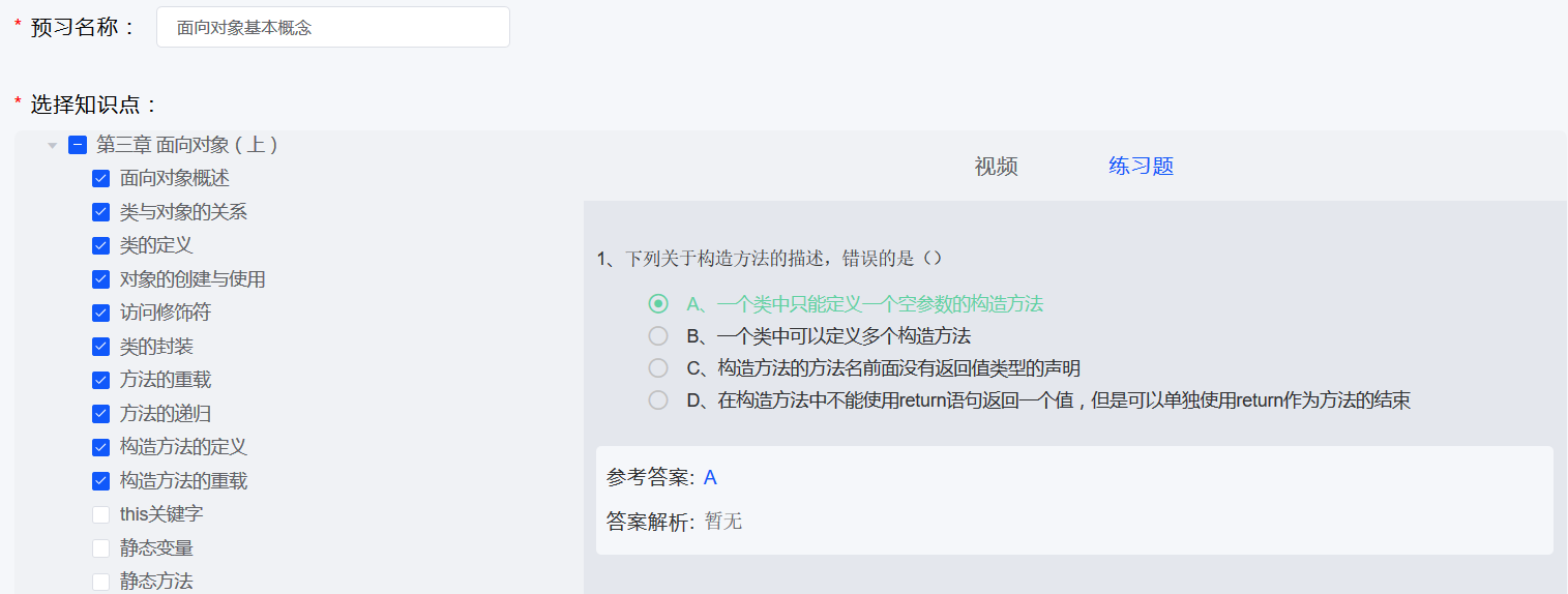 因此,在上课前3天,利用“传智播客高校教辅平台”将预习任务布置下去,并于上课前一天晚上检查大家的完成效果,借此方式来督促学生预习。如下图所示: