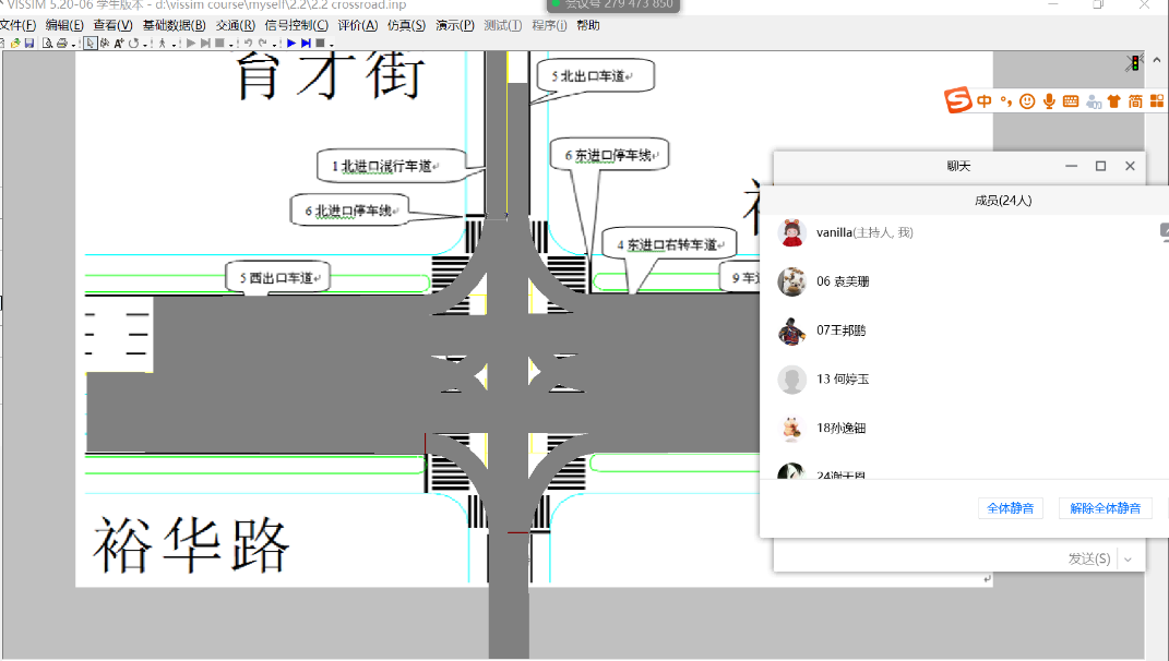 课程直播:在正式上课之前通过试播和比选,最后选择“腾讯会议”作为直播平台,学生普遍反映直播清晰流畅,卡顿少。直播授课主要讲解上次作业中的易错点、本次课的重点及相应的VISSIM软件的操作演示,并要求学生同步练习,实时解答学生的提问;