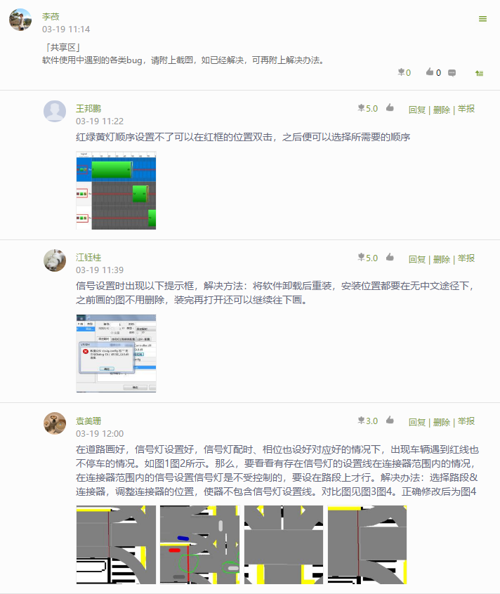 主题讨论分为三类,第一类是由授课老师发起一个与课程内容相关的问题,通常需要学生自学后通过思考、归纳才能给出答案,有利于培养学生独立思考的能力;第二类是在主题讨论区设置专门的“答疑区”。学生在观看录播视频过程中遇到的任何问题都可以在答疑区留言,授课老师会及时回复解答;第三类是在主题讨论区设置专门的“共享区”。鼓励学生将其在使用VISSIM软件过程中出现的各类技术问题及解决办法展示出来,做到经验共享、解决方法共享,可供其他学生在遇到相同问题时参考解决,培养学生独立解决问题的能力。