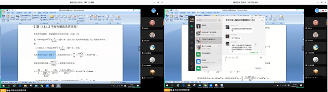 作为一门工科理论课程,《工程光学(2)》的深入学习需要足够的习题练习。为此,任课教师通过微信群布置了每节课的作业题。下次上课时,任课教师通过微信群公布上次作业题的参考答案,并在腾讯会议上,利用word墨迹书写,直播讲解每道作业题的答案,从而确保作业题讲解的效果不亚于实体课堂板书讲解。