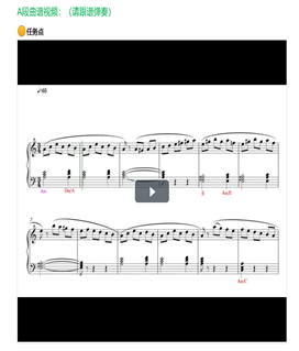 针对没有钢琴的同学,课程在学习通里设计了无声练习的内容。无声练琴是一种高级的练琴方式,即在无琴的状态下用手指练琴并想象音响效果,这种方式虽然对演奏者的内心听觉要求十分高,但是我在学习页面对练习的内容录制了音响,让练习者听着音响进行练习,就大大降低了难度。