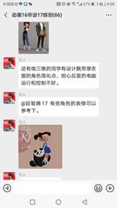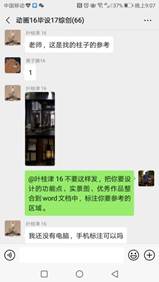 除了正常的本科教学课堂,美术学院也紧抓毕业班的教学进度进度,各毕业指导群内交流活跃,尤其是美术学院动画系,因其特殊的创作方式,每位同学必须各司其职,保证毕业设计的进度推进,故此,动画系黄爱民、陈宜人和皮宪文三位辅导老师兢兢业业,为学生提供详细毕设疑问解答与指导。美术学院其余毕业指导老师也同样敬业,不分工作休息时间,全日无休的随时为毕业生解疑答惑。