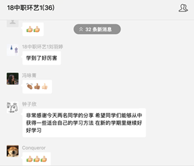 图9 18级环艺中职班入党积极分子班群内分享线上学习方法