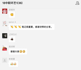 图8 18级环艺1班入党积极分子班群内分享线上学习方法