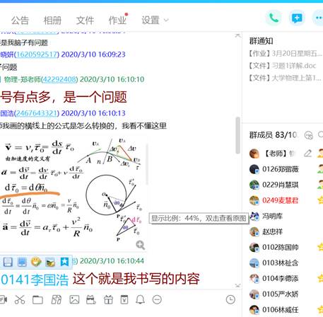线上教学第三周,绝大部分同学们学习积极性不减,能按时进入课堂准时签到,网课出勤率仍然高,课上认真听讲,积极思考和回答问题,积极与老师互动;课下能结合学习资料对所讲知识点进行复习,有疑问能及时与老师沟通,进一步巩固所学,按时完成作业并能及时上交,学习质量较好。