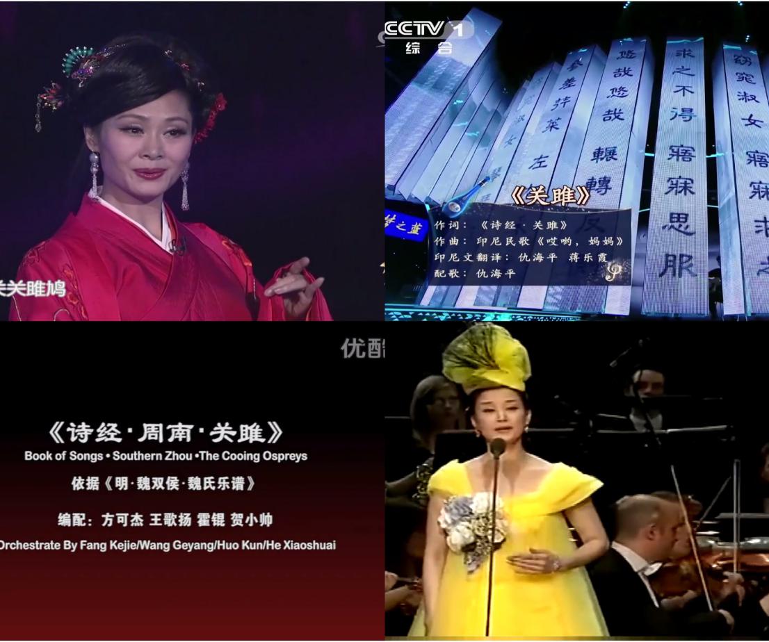 其三、呈现立体多元的声乐艺术:以网络资源丰富课堂和课后学习参考资料。大量的优质课程和不同风格的作品演绎为学生提供更广阔的视野。这需要老师对资源的精心挑选,为学生推荐高品质、专业性强的学习参考。以作品《关雎》为例,从不同音乐创作、不同演唱风格、不同民族、不同时代的四个版本,鉴赏声乐作品《关雎》的演绎。