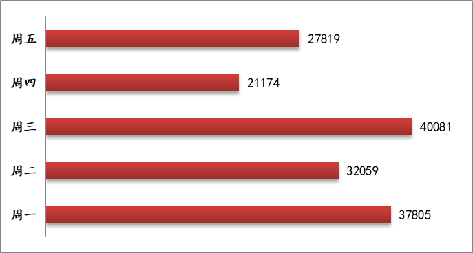 本周全校共计159962人次学生开展线上学习(见图10)。其中,周一至周五分别有37805人次、32059人次、40081人次、21174人次、27819人次的学生开展线上学习。