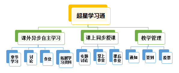 超星学生通可供学生异步学习使用,教师在超星学习通中创建课程,放置学习资料,设置讨论主题,布置作业,学生可以利用它在自己方便的时间内进行课前预习或课后自学使用。