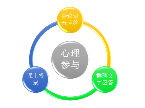 这是对学生在课程教学过程中学习参与的最低要求。为了保证所有学生都能够达到在授课时间内全过程伴同存在,我在教学过程中随机组合以下策略,检查学生是否到课堂并坚持听课,以确保学生全程参与到远程面授的过程中来: