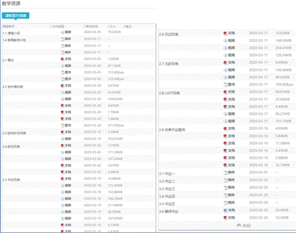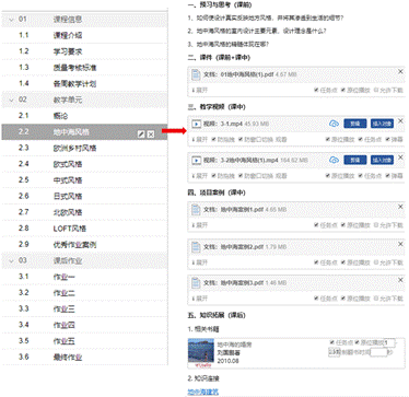 (2)超星泛雅平台慕课建设。教师本人在超星泛雅平台已建设3门慕课,而该班学生已经在上学期上过其中的一门慕课,熟悉超星一平三端网络课程教学方式,因此,继续使用该平台建设《室内设计风格与流派》慕课具备成熟的基础条件。在寒假期间,经过积极的准备,最终形成以下几方面在线教学资源建设内容(详见图2、图3):