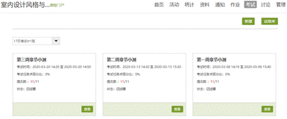 ⑤课后作业和题库建设。本课程一共设计了5份平时作业和最后期末考察的综合设计作业。每次上完课会布置作业,一是课后思考题,二是课程作业。作业难度也会随课程教学进度从简到难结合进行,同时结合实际情况,作业难度会有所降低,因环境设计专业的课程设计作业均需要用到电脑软件出效果图,而部分学生在家因没有电脑只有手机,很难完成这个任务,因此设计作业可以手绘图和电脑效果图二选一,也可以是待返校后稍作补交电脑效果图等。题库建设,题型包括单选题、多选题、判断题和简答题,主要用在一周章节小测中。达到知识巩固的目的,虽然本课程最后考核形式是考察(综合设计作业),但重要知识点测试,是提高学习积极性和发挥教学效果的有效方式(详见图4和图5)。