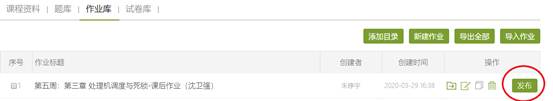 课后作业直接通过学习通平台发布。由于课前已在作业库中创建好课程作业,因此,老师在下课后只需要登录学习通平台,点击发布本次课程作业即可,如下图18。