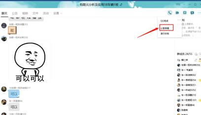 使用QQ群内的QQ语音功能并分享屏幕,使学生可以观看课件和板书。实施路径:点击QQ群内的QQ语音,在下拉菜单中点击屏幕分享,选择分享屏幕的区域范围展示课件和板书。
