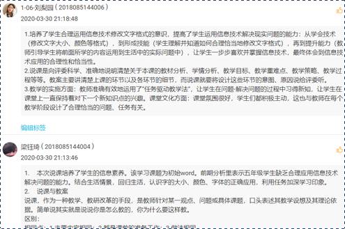 另外,我院老师们充分利用各教学平台的特色、根据自身教学需要和课程特点,合理采用教学多种工具和形式,如观看慕课、在线直播、在线辅导答疑、在线学习讨论、在线作业与考试等进行教学,教学组织控制得当,学生互动积极,课堂互动良好有序。例如,教育技术学系吴仕云老师在《信息化教育教学法》课程中采用了“QQ群课堂+云班课+中国大学MOOC平台”进行翻转课堂教学,上课形式为“课前自主学习+课中精讲(辅以答疑)+课后作业”。课前,吴仕云老师要求学生观看MOOC课程,并用思维导图做好个性化笔记,根据自主学习单完成学习任务和讨论题、在云班课上提交在学习过程中产生的疑惑。课中,吴仕云老师精讲重点难点、强化知识逻辑关系、针对学习任务的完成情况进行评价与总结、对平台上的疑惑展开讨论互动、弹幕评论等。课后布置作业进行巩固,采用学生互评+老师评价等多元化评价手段。在上述教学中,为避免学生因在线学习时间过长无人监督、容易走神等情况,吴仕云老师将课堂教学内容颗粒化,分成15-20分钟的模块,在每模块结束后,针对模块内容开展在线活动(比如模块总结、讨论互动、弹幕评论、答疑解惑等),引导学生独立思考并调动其学习积极性。整个教学过程学生与老师交流活跃、线上教学体验良好。