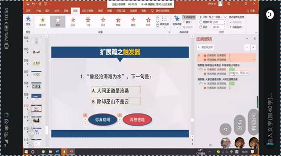 1.部分课程上课时教学平台经常切换,在一定程度分散学生的注意力,且有的学生对教学平台操作不熟练,在一定程度上影响学生的上课积极性;