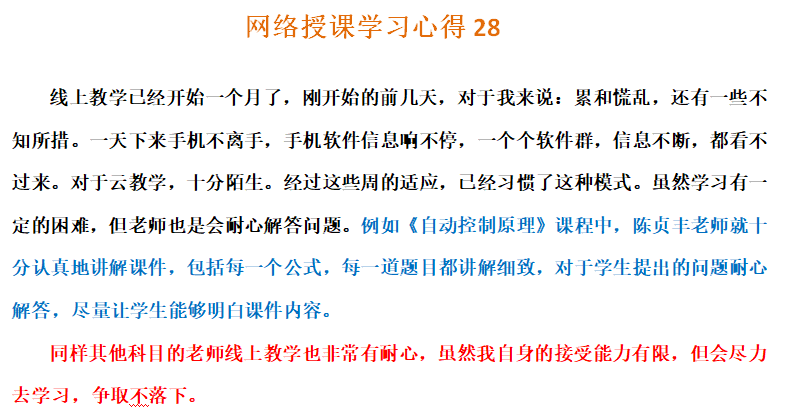 总之,在全体师生的共同努力下,我院线上教学运行平稳。在后续的线上教学过程中,自动化学院仍将继续听取各位督导、老师和同学们的意见,及时采取有效措施,进一步加强线上教研与在线教学监控,继续探索课程教学范式改革实效,按照学校要求认真做好线上教学工作。