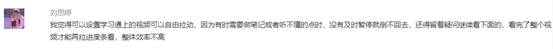 1.线上教学相比于传统的教学,更有利于学生集中注意力,同时教学视频资源可以随时随地反复观看,真正实现了移动式学习,能让学生花更多的时间和精力到学习中来。而且在互动交流过程中,虽然不如面对面交流的效率高,但是学生更愿意发言,很好的激发了师生教与学的积极性。